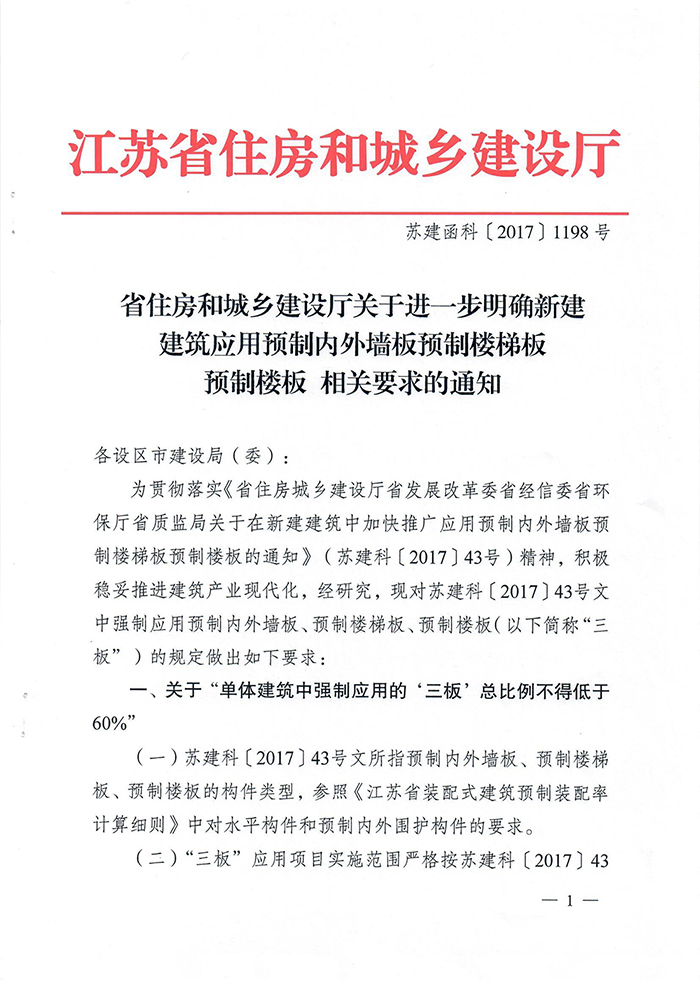 省住房和城鄉(xiāng)建設(shè)廳關(guān)于進(jìn)一步明確新建建筑應(yīng)用預(yù)制內(nèi)外墻板預(yù)制樓梯板預(yù)制樓板相關(guān)要求的通知